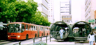Stuck in a traffic jam? Choking on car fumes? Then take the next exit and head south past the equator to the city of Curitiba, Brazil, where you can board a bus to a public transit utopia.